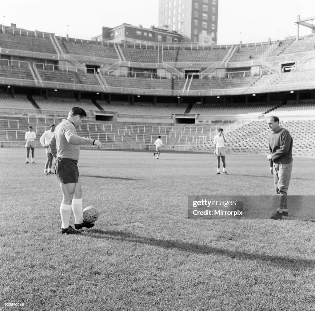 Ferenc Puskás with English pioneering legend Arthur Rowe, manager of Crystal Palace and advocate of the 'push and run' style and Alfredo Di Stéfano in 1962. Arthur Rowe was employed in Hungary as a consultant and a manager in 1938-1940 and also gave a series of lectures on the merits of the 'WM' system.